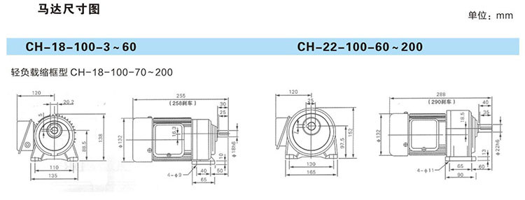 0.1KW CH型卧式三相铝壳(刹车)马达减速机